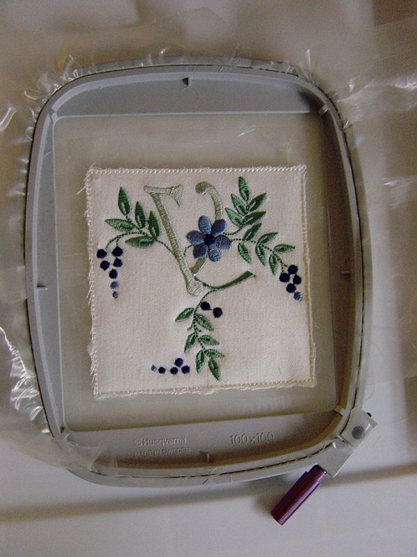 5. Embroider monogram design, following it's thread change list.