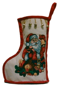 This cute little stocking has a sole, making it possible to put it under a Christmas tree as a gift box. If you insert a piece of wire inside, it will stand on it's own.