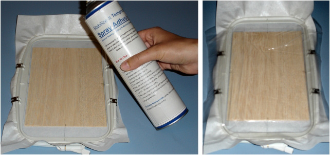 accurately centered. Let the spray dry for 10 - 15 minutes. Place 2 layers of THIN water-soluble topping over the Balsa. You may secure