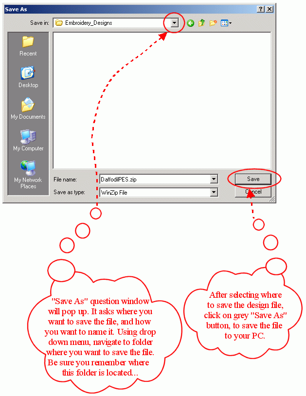 IMPORTANT: these same steps will also work if you purchase designs and get your download link by e-mail. If this is the case - open your email program (e.g. Outlook Express, or whatever you use to send and receive email). Locate the appropriate email message with your download link(s), and apply all the steps below. It all works in identical way.
